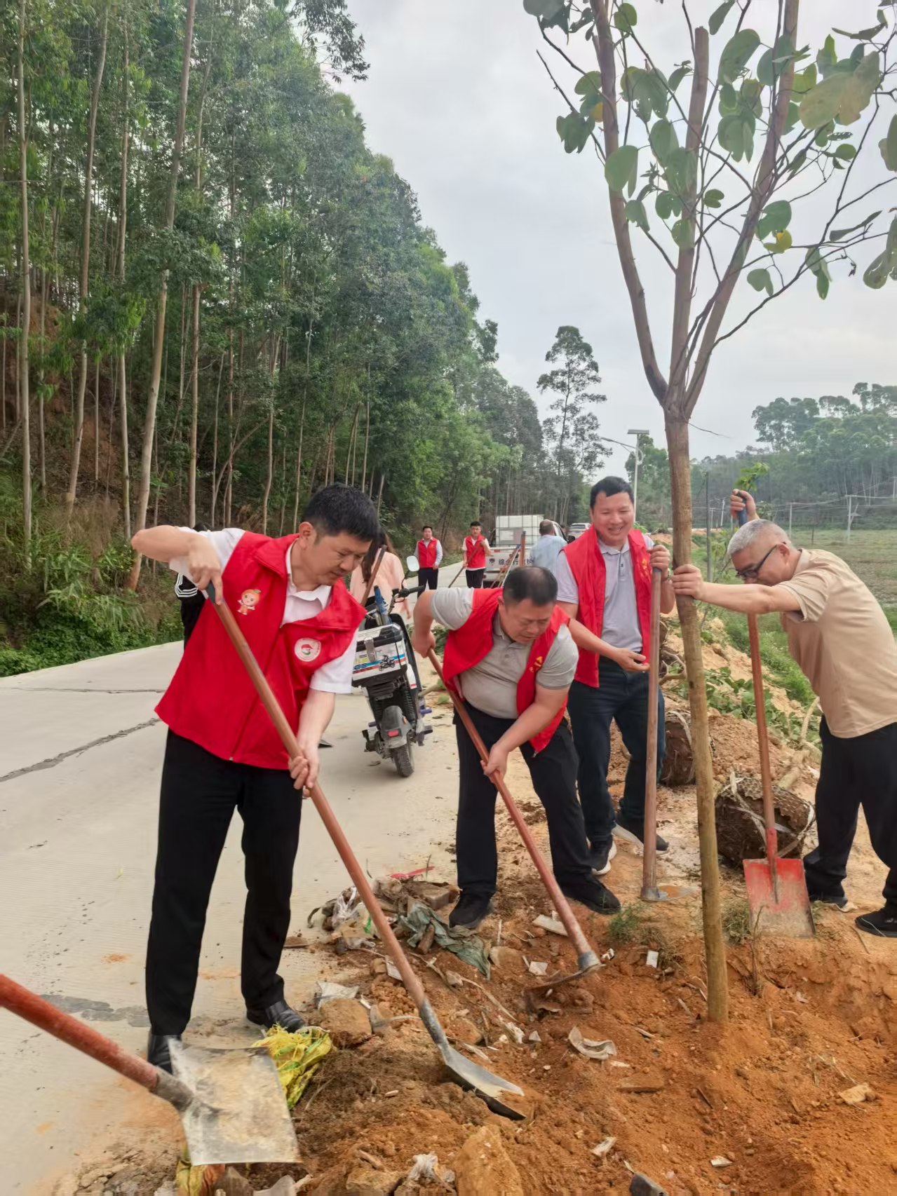 为推进绿美广东生态建设,助力广东省“百千万工程”,3月21日,船舶与海运学院正处级辅导员、党委副书记齐昊一行8人赴廉江市塘蓬镇那榔村开展共建活动。