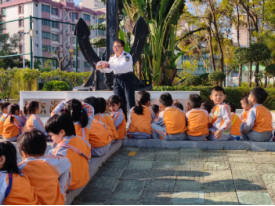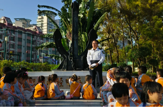 基地广场上,黝黑厚重的船锚雕塑如沉默的守护者,瞬间俘获了孩子们的目光。“哇!这‘钢铁巨兽’比教室还宽呢!” 孩子们像一群雀跃的小鸟,围着船锚探头探脑、伸手触摸,冰凉的纹路间仿佛藏着航海的古老故事。讲解员蹲下身轻声科普:“这是大船的‘海底锚定器’,锚爪像螃蟹的大钳子,能牢牢钳住海底的泥沙岩石,让万吨巨轮在风浪中稳如泰山!” 孩子们听得眼神发亮,接连抛出的疑问被生动解答,雕塑旁的欢笑声如银铃般悦耳。